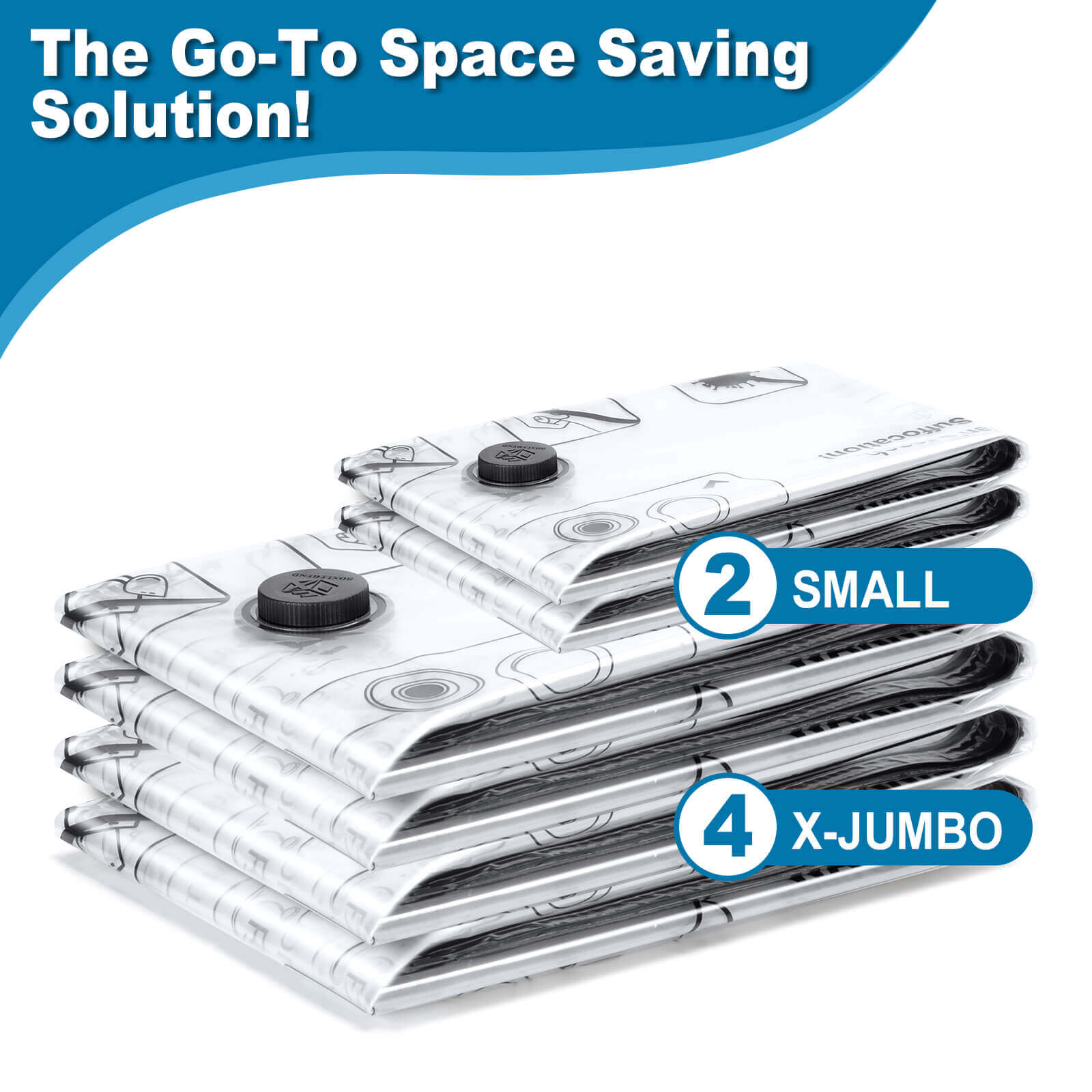 Cubepoint 6 Combo Vacuum Storage Bags, 4 X-Jumbo 2 Small Space Saver Storage Bags, Airtight Double Zipper Compression Storage Bags for Clothes, Comforters, Pillows