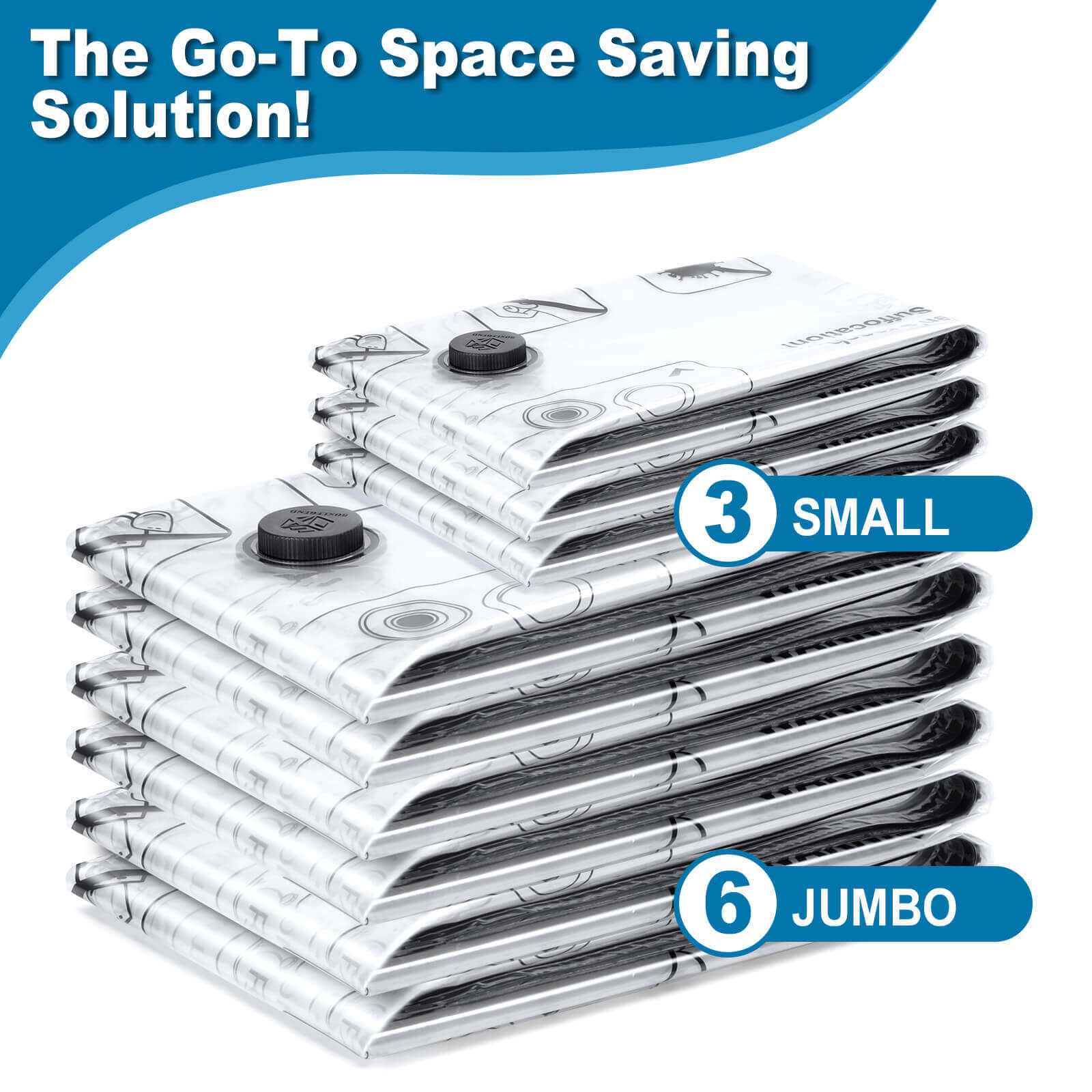 Cubepoint 9 Pack Vacuum Storage Bags, 6 Jumbo 3 Small Space Saver Bags, Airtight Vacuum Sealed Bags for Clothes, Comforters, Blankets