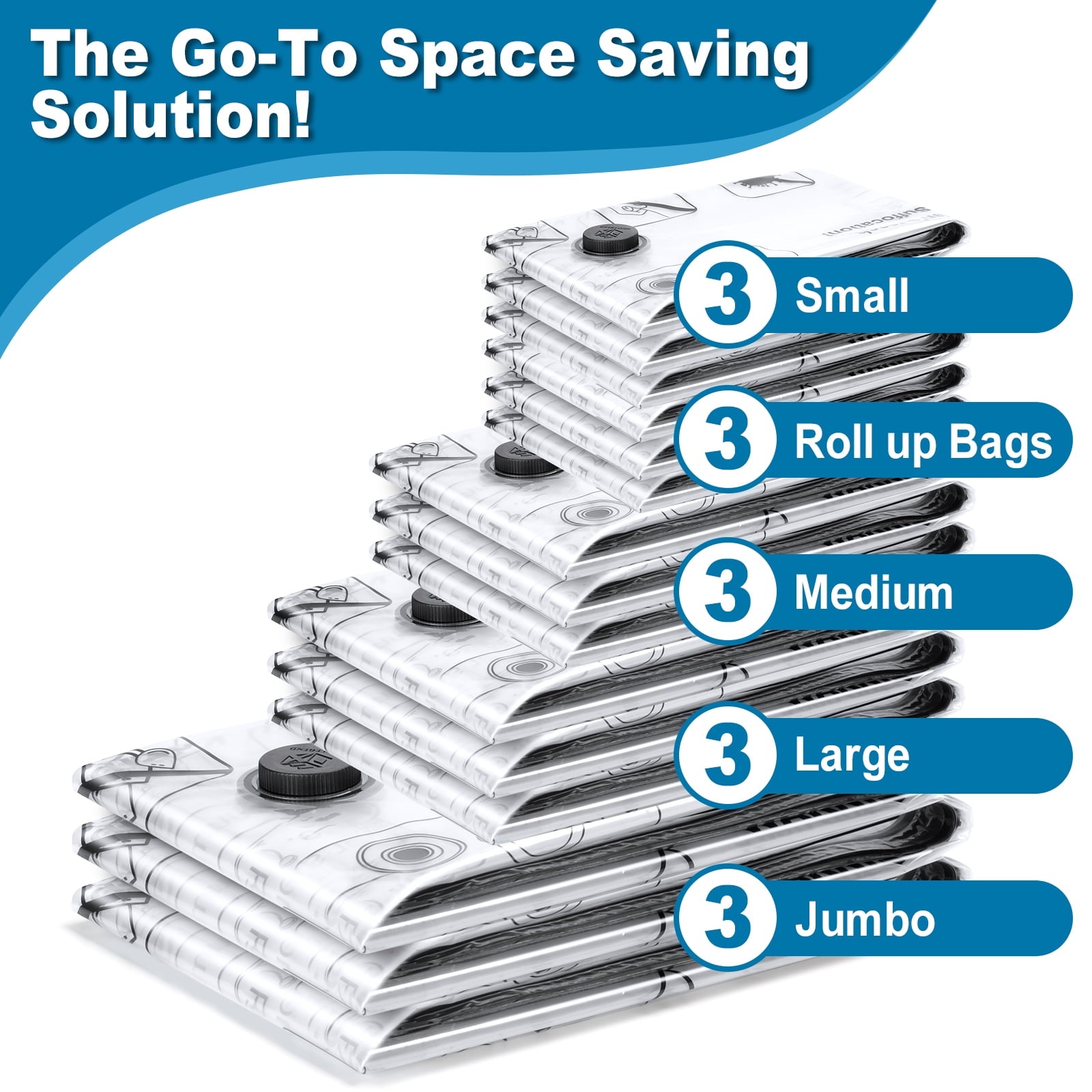 Cubepoint 15 Pack Vacuum Storage Bags with Electric Pump, 3 Jumbo 3 Large 3 Medium 3 Small 3 Roll up Bags, Vacuum Storage Bags for Clothes, Instant Space Saver Storage Bags