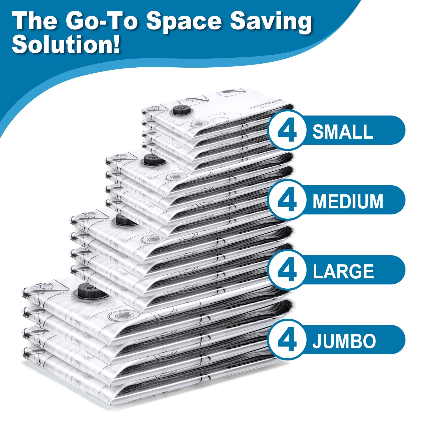 Cubepoint 16 Combo Vacuum Storage Bags with Pump, 4 Jumbo 4 Large 4 Medium 4 Samll Space Saver Storage Bags, Double Zipper Vacuum Seal Bags for Clothes, Comforters, Blankets