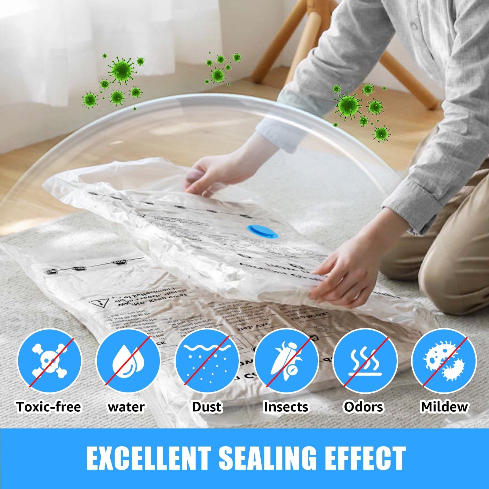 - 【 Effective Protection 】: The sealing performance of this vacuum seal storage bag is excellent, which can effectively isolate humid air from the outside and prevent clothes from getting damp and moldy. At the same time, it can also prevent clothing from being disturbed by dust and insects, and maintain the cleanliness and integrity of clothing.