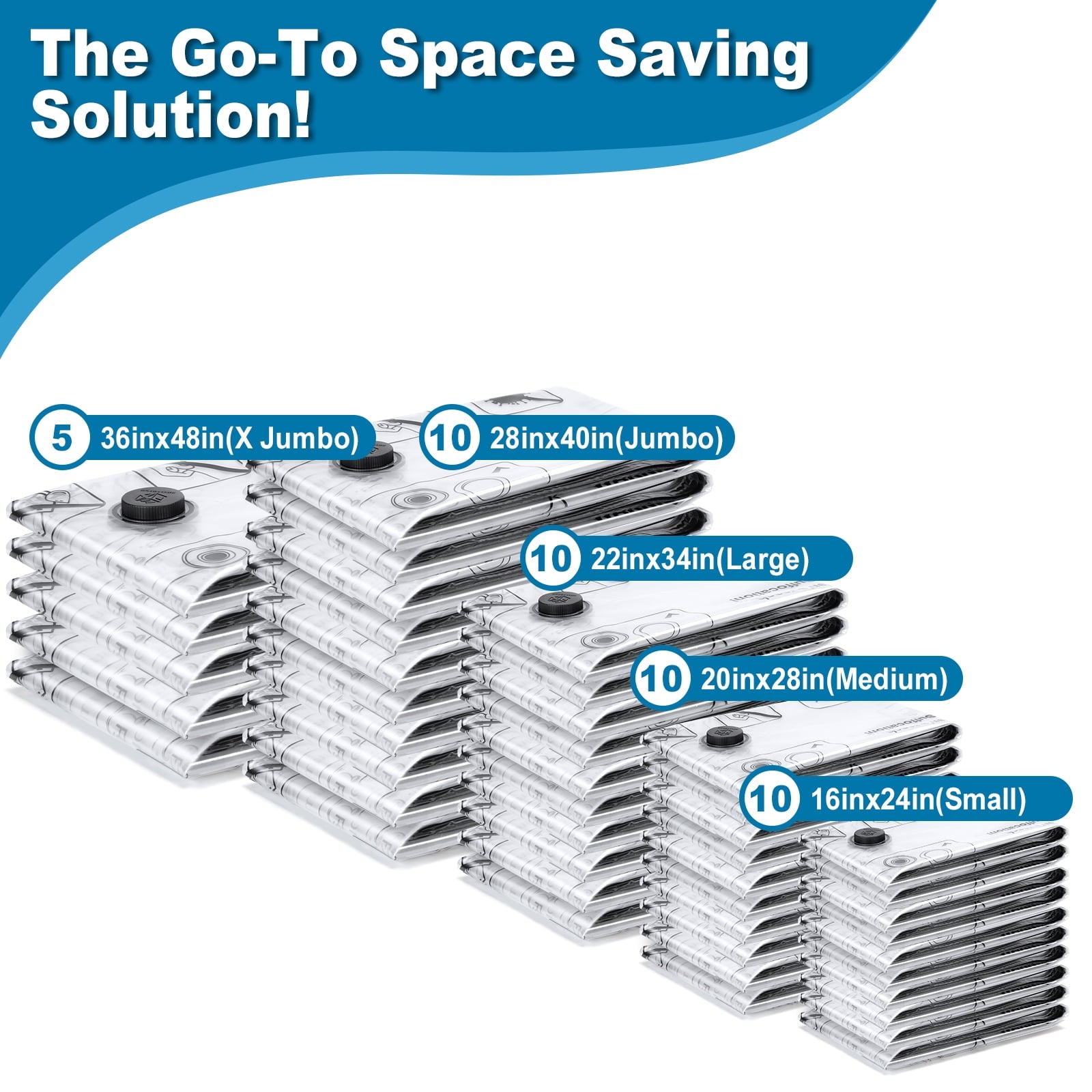 Cubepoint 45 Pack Vacuum Storage Bags Space Saver Bags (5 X-Jumbo/10 Jumbo/10 Large/10 Medium/10 Small) Compression for Comforters and Blankets Sealer Clothes Storage